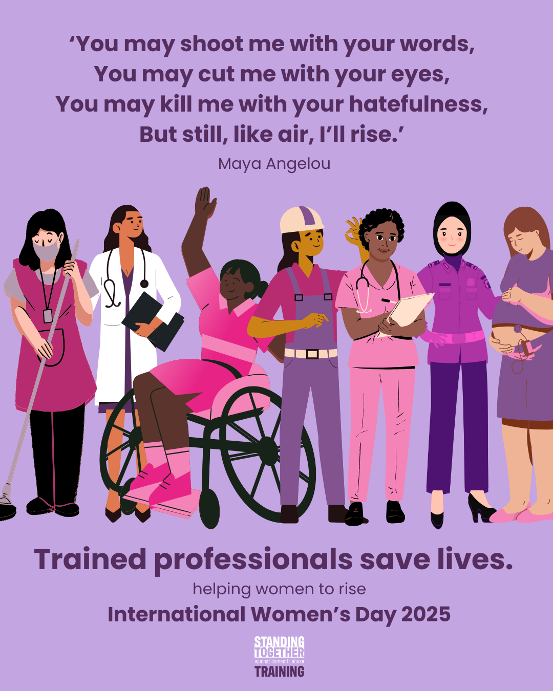 Standing Together 4/8/25 Standing Together 4/8/25 World Health Day 2025: Safeguarding Futures Through Professional Training Read More Standing Together 4/7/25 Standing Together 4/7/25 Healthy Futures Start with Safety: Why Healthcare Must Lead the Response to Domestic Abuse Read More Standing Together 4/2/25 Standing Together 4/2/25 Cherryl Henry-Leach Appointed to Ministry of Justice’s Women’s Justice Partnership Delivery Group to Tackle VAWG and Reform Criminal Justice System Read More Standing Together 3/28/25 Standing Together 3/28/25 From Lived Experience to Leadership: Why Housing Must Be a Lifeline for Survivors Read More Standing Together 3/27/25 Standing Together 3/27/25 Safeguarding Adolescents Through Education, Regulation and Community Action Read More Standing Together 3/26/25 Standing Together 3/26/25 Suicide is a Domestic Abuse Issue—We Need Urgent Action Read More Standing Together 3/25/25 Standing Together 3/25/25 The Women at the Heart of Housing First: It’s Time for National Action Read More Standing Together 3/24/25 Standing Together 3/24/25 Join Us for the LIVE Launch of the Westminster VAWG Housing First Podcast: “From Harm to Home” on 25th March Read More Standing Together 3/19/25 Standing Together 3/19/25 Supporting Remote Employees: The Hidden Challenge of Domestic Abuse Read More Standing Together 3/17/25 Standing Together 3/17/25 From Harm to Home: An Interview with Louisa Steele on the Westminster Violence Against Women and Girls Housing First Project Read More Standing Together 3/12/25 Standing Together 3/12/25 Empowering Professionals to Better Support Victim/Survivors: Why Domestic Abuse Training is Essential Read More Standing Together 3/10/25 Standing Together 3/10/25 Accelerating Action: Strengthening the Coordinated Community Response to End VAWG Read More Standing Together 3/7/25 Standing Together 3/7/25 Launching the CEO Blog on International Women's Day: A Feminist, Intersectional Approach to Ending Domestic Abuse Read More Standing Together 3/7/25 Standing Together 3/7/25 A Future Free from Domestic Abuse – Our Pledge for International Women’s Day 2025 Read More Standing Together 2/21/25 Standing Together 2/21/25 The System Finally Answered’: Raneem’s Law Brings Domestic Abuse Reform After Six-Year Fight Read More Standing Together 2/21/25 Standing Together 2/21/25 Weaving a Future of Change: Jordan’s Vision for Tackling Domestic Abuse Read More Standing Together 2/17/25 Standing Together 2/17/25 Standing Together Responds: High Court Ruling on Police Dismissal Procedures Read More Standing Together 2/7/25 Standing Together 2/7/25 STADA Statement on the Women’s Justice Board’s Initiative to Reduce Female Imprisonment Read More Standing Together 2/4/25 Standing Together 2/4/25 A System in Crisis: A Sustainable and United Response to Ending Violence Against Women and Girls Read More Standing Together 1/30/25 Standing Together 1/30/25 Honouring Harpreet: A Call for a Coordinated Community Response to Support Migrant Survivors of Domestic Abuse Read More Newer Posts Older Posts